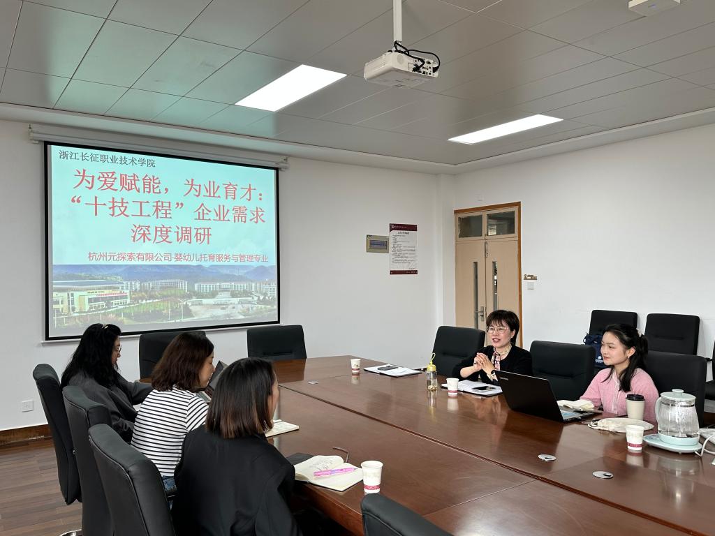 在交流环节,双方重点围绕“订单班”开设、现代学徒制等议题展开深入探讨。此外,针对学校正在推进的“十技工程”,王洁从岗位实际能力需求出发,就加强婴幼儿照护、早期发展指导、应急处理等专项技能培养,提出了具体建议,为优化人才培养方案提供了参考。