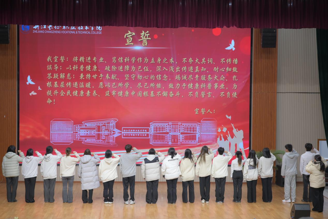 近日,浙江长征职业技术学院“浙里青护·小青禾”健康科普队成立仪式在学校第一报告厅隆重举行。杭州市西溪医院健康事业发展部主任沈文礼,浙江长征职业技术学院党委学工部部长章剑飞,护理与健康学院院长祖淑梅、党总支书记张泱及各二级学院师生代表500余人齐聚一堂,共同见证这支兼具专业使命与青春担当的健康科普队伍扬帆启航。